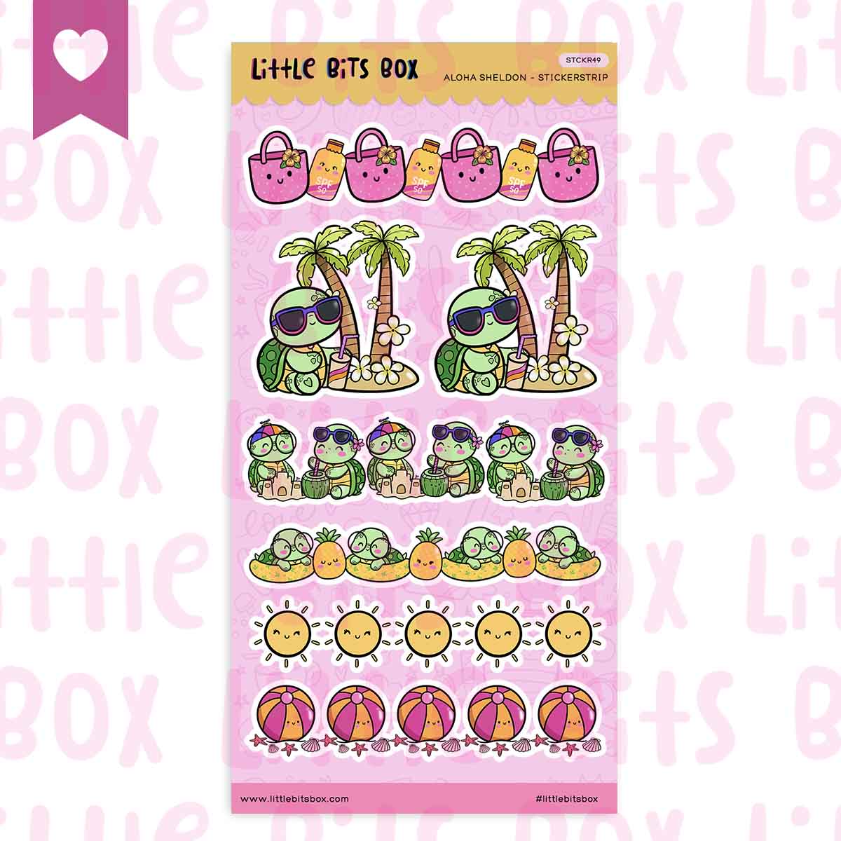Each sheet features our lovable turtle friend, Sheldon, enjoying the sweetest tropical vibes — from sipping coconuts to lounging under the palms. Printed on high-quality matte stickers, they’re vibrant, durable, and perfect for all your creative adventures.